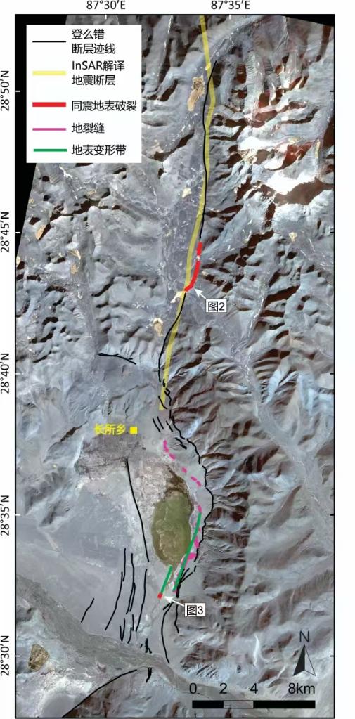 中國地震局地質(zhì)研究所、四川省地震局聯(lián)合調(diào)查團(tuán)隊1月9日在西藏日喀則定日縣長所鄉(xiāng)雜村南發(fā)現(xiàn)定日地震同震地表變形帶,同震形變帶延伸超過10千米。