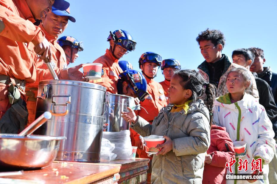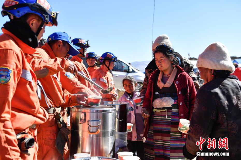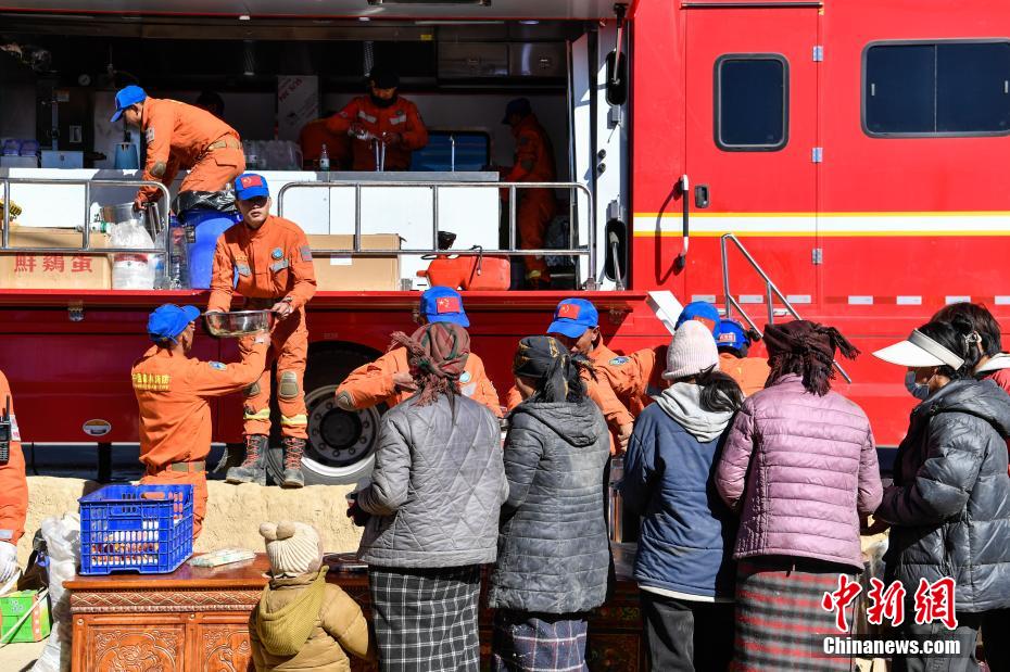 1月9日,西藏自治區(qū)定日縣曲洛鄉(xiāng)措昂村安置點,西藏自治區(qū)森林消防總隊救援人員為受災(zāi)民眾提供飲食。當日,位于西藏自治區(qū)定日縣曲洛鄉(xiāng)措昂村安置點,西藏各級救援人員和愛心企業(yè)不斷轉(zhuǎn)運、發(fā)放生活物資、搭建活動板房、全力保障受災(zāi)民眾的飲食供應(yīng)等,保障受災(zāi)民眾基本生活。中新社記者 貢嘎來松 攝
