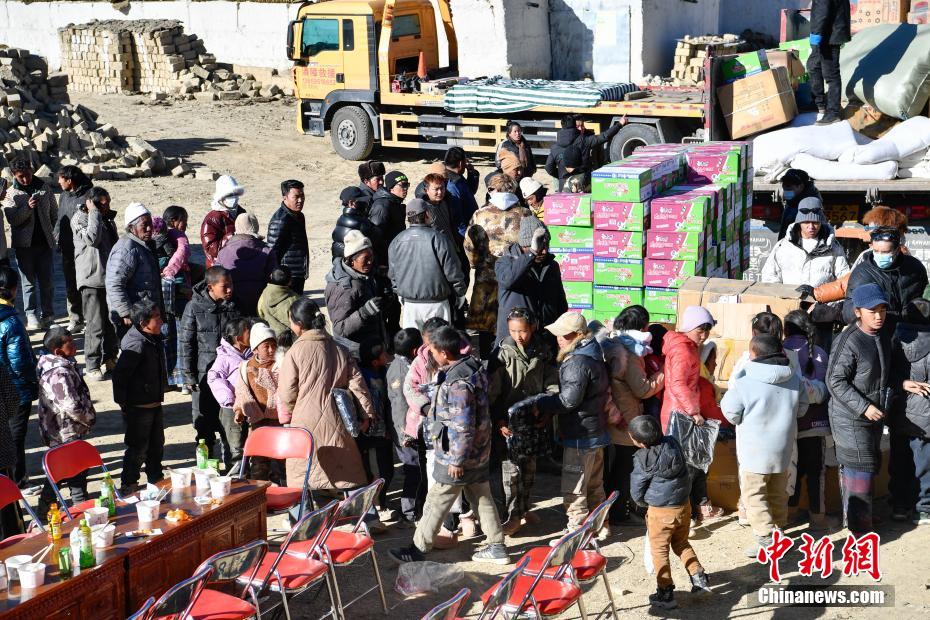 1月9日,西藏自治區(qū)定日縣曲洛鄉(xiāng)措昂村安置點,愛心企業(yè)為受災(zāi)民眾發(fā)放生活物資。當日,位于西藏自治區(qū)定日縣曲洛鄉(xiāng)措昂村安置點,西藏各級救援人員和愛心企業(yè)不斷轉(zhuǎn)運、發(fā)放生活物資、搭建安置活動板房、全力保障受災(zāi)民眾的飲食供應(yīng)等,保障受災(zāi)民眾基本生活。中新社記者 貢嘎來松 攝