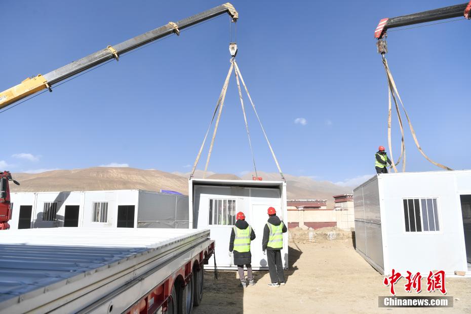 1月9日,西藏自治區(qū)定日縣曲洛鄉(xiāng)措昂村安置點,愛心企業(yè)為受災(zāi)民眾搭建活動板房。當日,位于西藏自治區(qū)定日縣曲洛鄉(xiāng)措昂村安置點,西藏各級救援人員和愛心企業(yè)不斷轉(zhuǎn)運、發(fā)放生活物資、搭建活動板房、全力保障受災(zāi)民眾的飲食供應(yīng)等,保障受災(zāi)民眾基本生活。中新社記者 貢嘎來松 攝