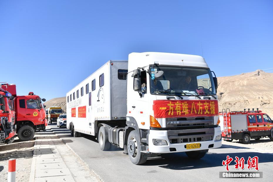 1月9日,西藏自治區(qū)定日縣曲洛鄉(xiāng)措昂村,滿載救災(zāi)物資的貨車抵達安置點。當日,位于西藏自治區(qū)定日縣曲洛鄉(xiāng)措昂村安置點,西藏各級救援人員和愛心企業(yè)不斷轉(zhuǎn)運、發(fā)放生活物資、搭建活動板房、全力保障受災(zāi)民眾的飲食供應(yīng)等,保障受災(zāi)民眾基本生活。中新社記者 貢嘎來松 攝