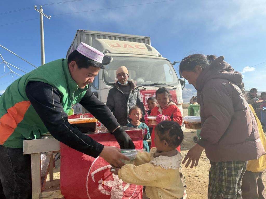 西藏定日6.8級(jí)地震發(fā)生后第二天,看到地震的消息,馬杰和朋友立馬帶上物資奔赴災(zāi)區(qū)救援一線。一行5人從甘肅臨夏出發(fā),驅(qū)車(chē)2700多公里,10日到震中后便開(kāi)始給受災(zāi)群眾免費(fèi)做拉面。