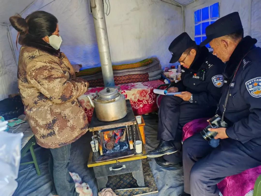 民輔警們穿梭于安置點(diǎn)的帳篷間,每到一處,都與群眾親切交談。“晚上睡覺冷不冷?”“吃飯還習(xí)慣嗎?”簡單的話語,飽含著無盡的關(guān)切。他們神情專注,認(rèn)真傾聽群眾的反饋,無論是基本的衣食住行問題,還是特殊的醫(yī)療需求,都詳細(xì)記錄在冊(cè)。對(duì)于行動(dòng)不便的老人與殘疾人,民輔警們更是格外關(guān)注,耐心細(xì)致地詢問他們?cè)谏钪杏龅降姆N種困難,力求在第一時(shí)間給予解。