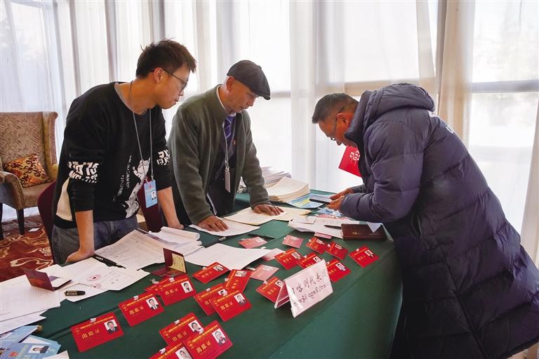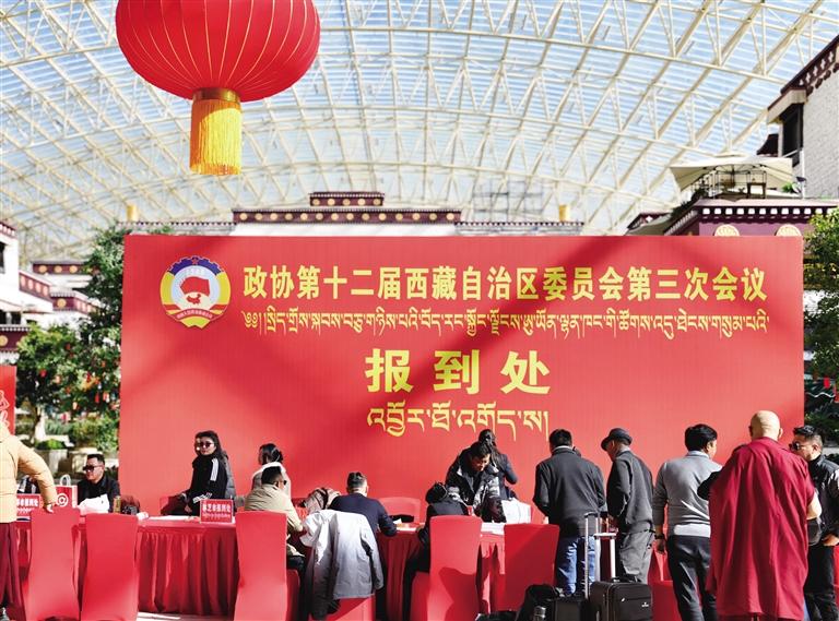 1月16日,參加自治區(qū)政協(xié)十二屆三次會議的委員向大會報到。記者 貢曲羅杰 攝