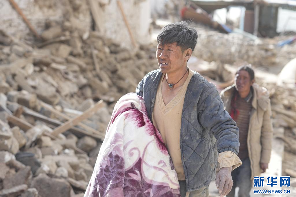 1月7日,古榮村的受災(zāi)群眾在已成廢墟的家門口哭泣。新華社記者 晉美多吉 攝