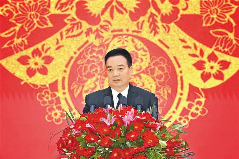 王君正在致辭中說,2024年是西藏經(jīng)濟社會發(fā)展歷程中不平凡的一年。自治區(qū)黨委團結(jié)帶領(lǐng)全區(qū)各族干部群眾,深入貫徹落實習近平總書記關(guān)于西藏工作的重要指示和新時代黨的治藏方略,緊緊圍繞“四件大事”落實,努力推動長治久安和高質(zhì)量發(fā)展取得新成效。牢固樹立總體國家安全觀,堅持警鐘長鳴、警惕常在,把維穩(wěn)工作做在日常、做到經(jīng)常、落實在基層,加快推進依法治藏,建設(shè)更高水平的法治西藏,確保社會大局持續(xù)和諧穩(wěn)定,長治久安的基礎(chǔ)更加牢固。完整準確全面貫徹新發(fā)展理念,落實“三個賦予一個有利于”總要求,傳統(tǒng)產(chǎn)業(yè)提質(zhì)增效,新興產(chǎn)業(yè)加快發(fā)展,營商環(huán)境持續(xù)優(yōu)化,努力推動經(jīng)濟社會高質(zhì)量發(fā)展,確保經(jīng)濟發(fā)展當前有活力、未來有潛力。(下轉(zhuǎn)第二版)(緊接第一版) 堅持以人民為中心的發(fā)展思想,持續(xù)改善各族群眾的生產(chǎn)生活條件,改進工作方式方法,采取針對性措施解決好群眾關(guān)心的醫(yī)療、教育、就業(yè)等實際問題,西藏班招生規(guī)模不斷擴大,全區(qū)城鄉(xiāng)面貌發(fā)生深刻變化,各族群眾的獲得感幸福感安全感持續(xù)增強。持之以恒推進全面從嚴治黨,堅決貫徹黨中央關(guān)于全面從嚴治黨的戰(zhàn)略部署,牢固樹立憑能力用干部、以實績論英雄的鮮明用人導向,努力建設(shè)一支忠誠干凈擔當?shù)母刹筷犖?,黨的戰(zhàn)斗力、凝聚力、領(lǐng)導力、號召力不斷增強。日喀則市定日縣地震發(fā)生后,自治區(qū)黨委認真貫徹落實習近平總書記重要指示精神和中共中央政治局常務委員會會議精神,按照黨中央、國務院決策部署,全區(qū)黨政軍警民齊心協(xié)力、協(xié)調(diào)聯(lián)動,廣大黨員干部勇于擔當、沖鋒在前,科學救治受傷群眾,全力搶修基礎(chǔ)設(shè)施,妥善安置受災群眾,確保了人民群眾生命財產(chǎn)安全,抗震救災工作取得階段性勝利。西藏各項事業(yè)的發(fā)展進步,是以習近平同志為核心的黨中央英明領(lǐng)導的結(jié)果,是習近平新時代中國特色社會主義思想科學指引的結(jié)果,是全區(qū)各族人民努力奮斗的結(jié)果。