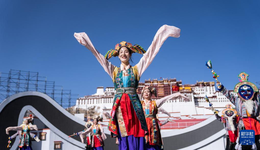 2月2日,演員在布達拉宮廣場演出。新華社記者 丁增尼達 攝