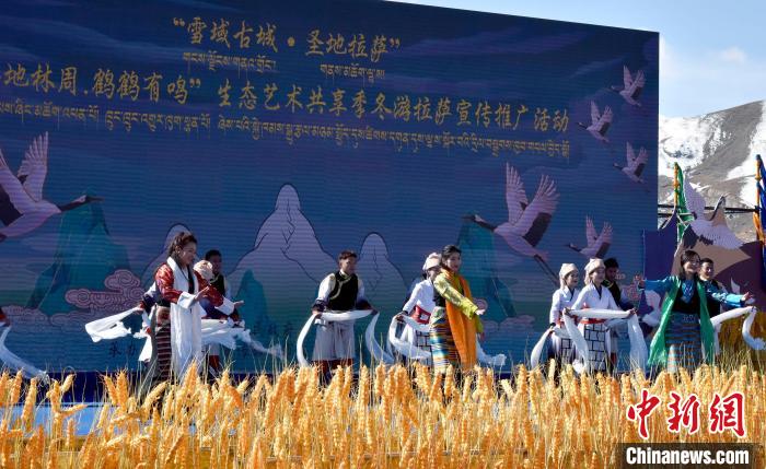 圖為“福地林周 鶴鶴有鳴”生態(tài)藝術(shù)共享季冬游拉薩宣傳推廣活動現(xiàn)場的文藝表演。拉薩市文化和旅游局供圖