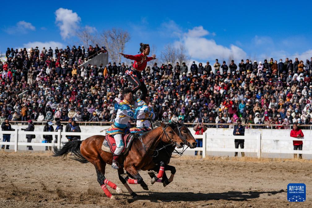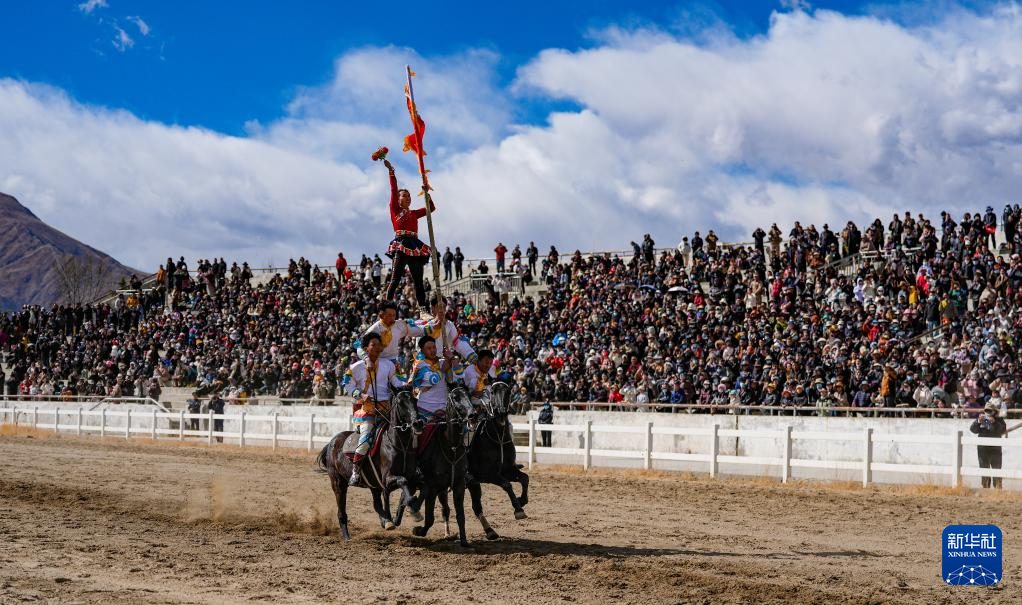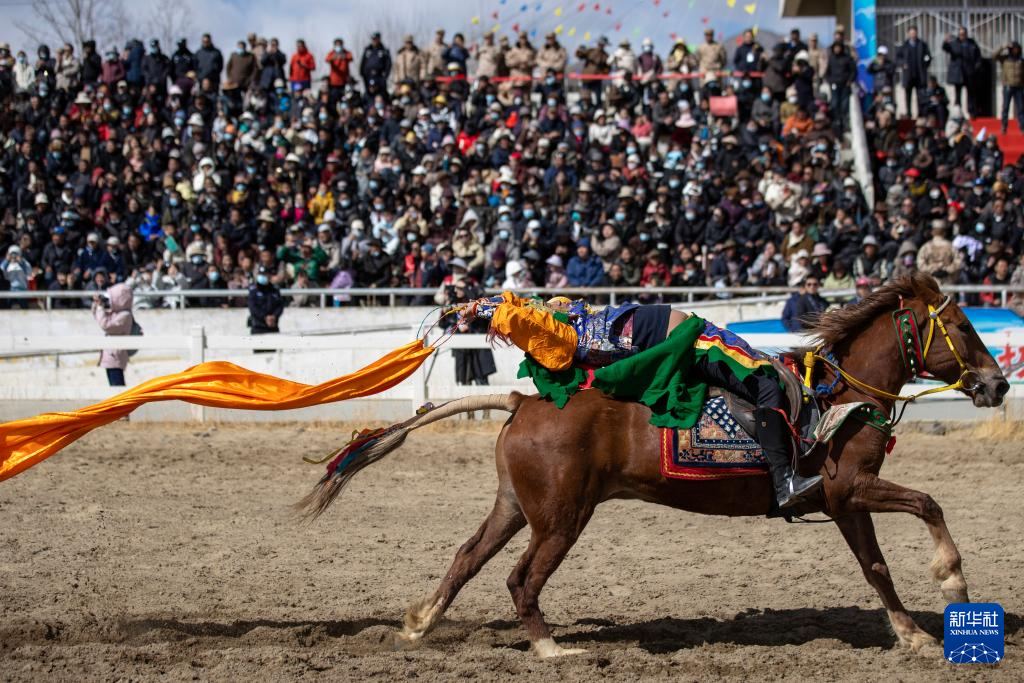 當(dāng)日,2025年藏歷新年初三民族傳統(tǒng)馬術(shù)表演暨民族賽馬活動(dòng)在拉薩市北郊賽馬場(chǎng)舉行。馬術(shù)在西藏是吉祥、勇敢和智慧的象征。騎手們用精彩表演為觀眾送上新年的祝福。