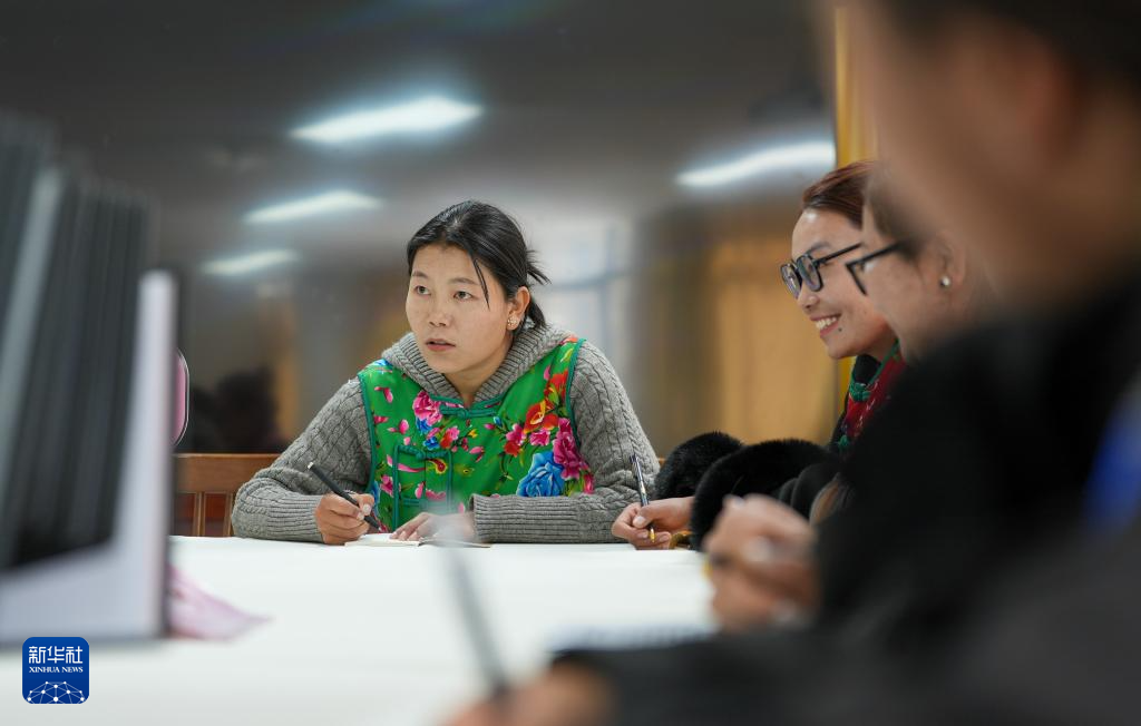 “花大姐”在商量解決社區(qū)群眾難事(3月6日攝)。新華社記者 晉美多吉 攝