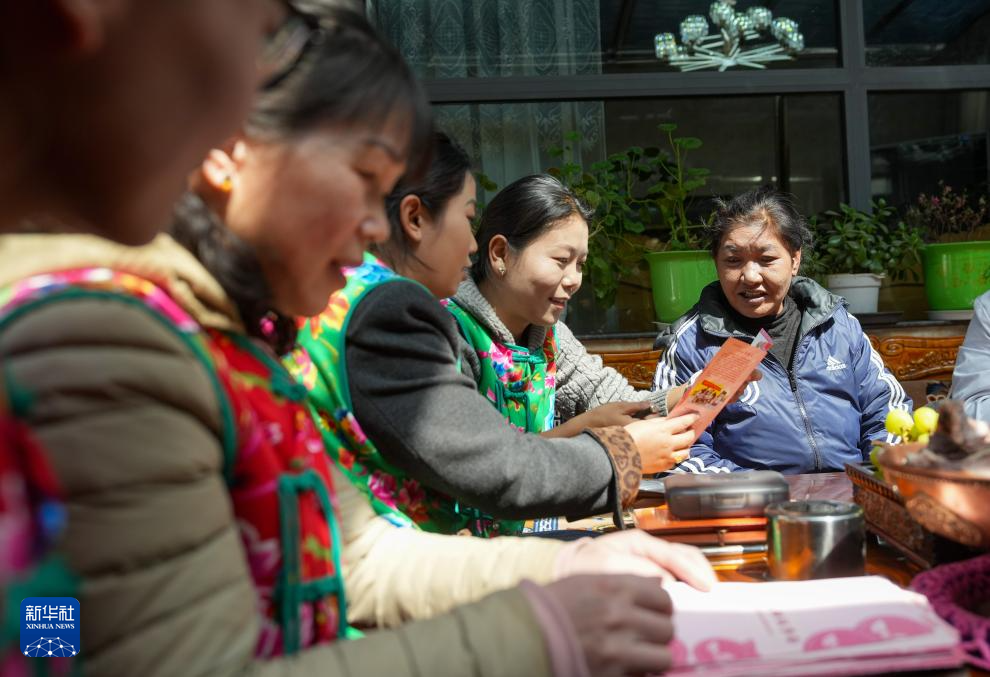 “花大姐”向轄區(qū)群眾宣傳議事會各種惠民事項(3月6日攝)。新華社記者 晉美多吉 攝