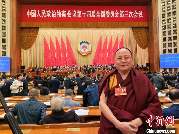 3月7日,全國政協(xié)委員達(dá)扎在北京參加中國人民政治協(xié)商會議第十四屆全國委員會第三次會議。(受訪者供圖)