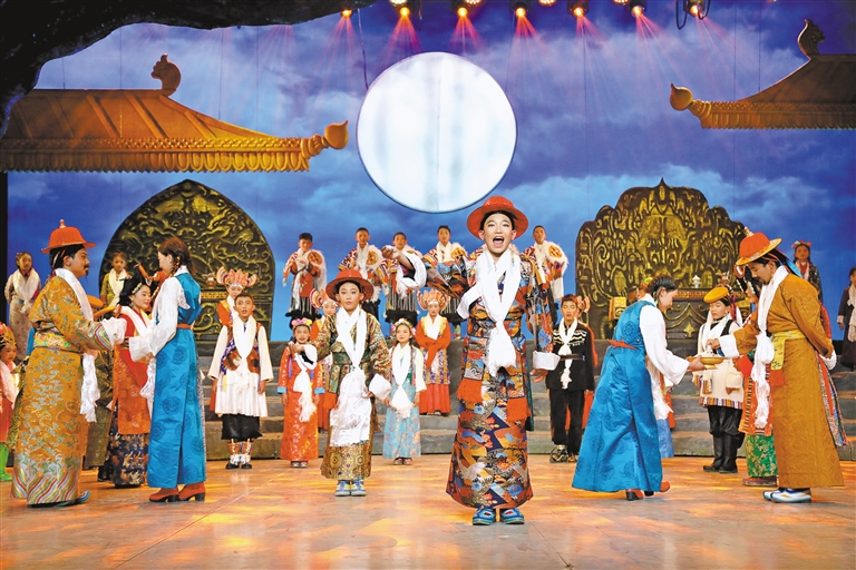 少兒舞臺劇藏戲《頓月頓珠》以傳統(tǒng)八大藏戲的故事為藍(lán)本,以人與自然和諧相處、人類命運(yùn)共同體和親情為主題,講述了兩位同父異母的王子頓珠與頓月被迫逃亡到最終獲得幸福人生的故事。