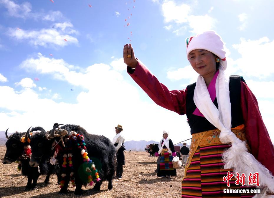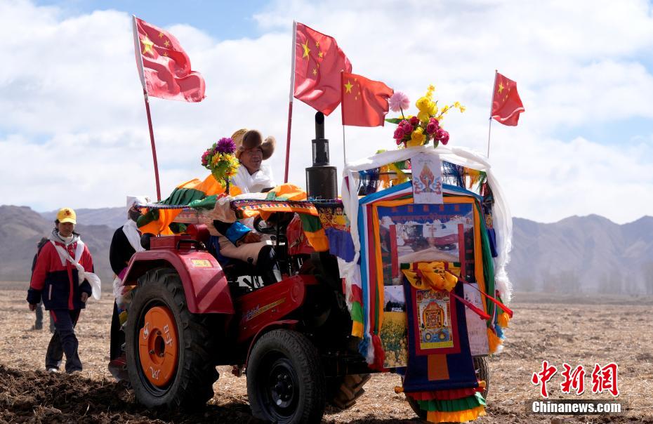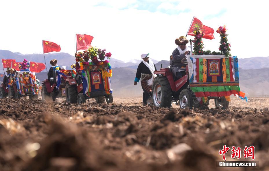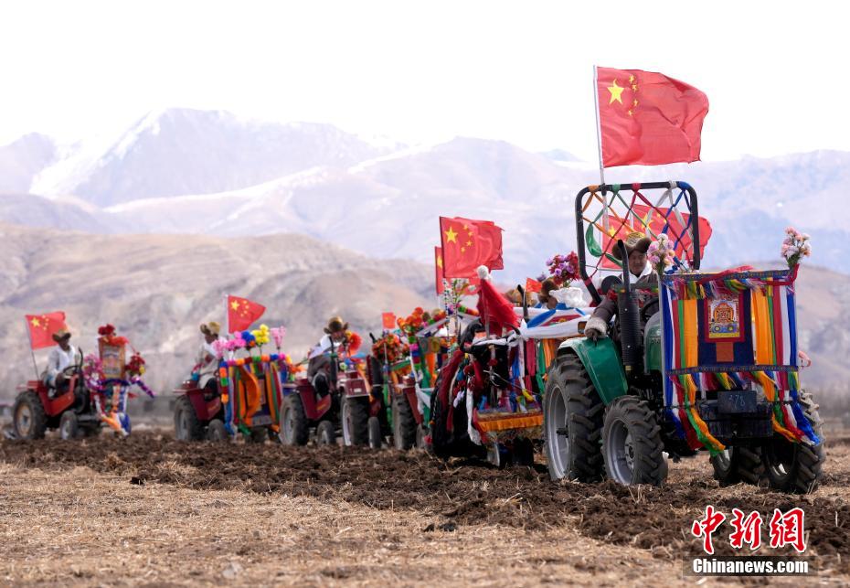 3月16日,是西藏農(nóng)區(qū)開耕的日子。村民身著節(jié)日盛裝,相聚在田間。傳統(tǒng)的“二牛抬杠”開啟“第一犁”后,拖拉機(jī)緊隨其后,婦女將手中的種子撒下,祈求風(fēng)調(diào)雨順、農(nóng)業(yè)豐收。圖為西藏拉薩市林周縣強嘎鄉(xiāng)春耕儀式現(xiàn)場。中新社記者 李林 攝