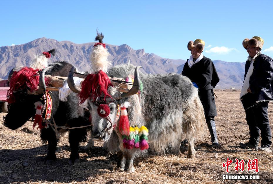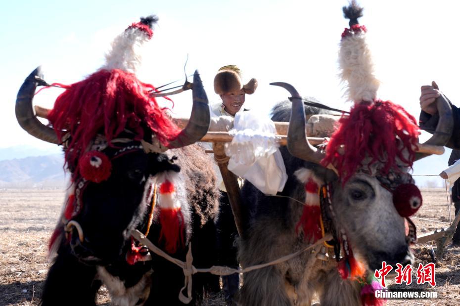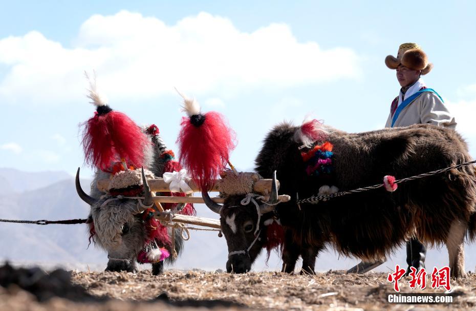 3月16日,是西藏農(nóng)區(qū)開耕的日子。村民身著節(jié)日盛裝,相聚在田間。傳統(tǒng)的“二牛抬杠”開啟“第一犁”后,拖拉機(jī)緊隨其后,婦女將手中的種子撒下,祈求風(fēng)調(diào)雨順、農(nóng)業(yè)豐收。圖為西藏拉薩市林周縣強嘎鄉(xiāng)春耕儀式現(xiàn)場,“二牛抬杠”開啟“第一犁”。中新社記者 李林 攝