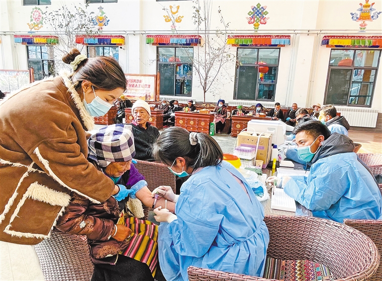 近日,浪卡子縣中心人民醫(yī)院醫(yī)療團(tuán)隊(duì)開(kāi)展免費(fèi)體檢公益活動(dòng),為浪卡子縣五保戶集中供養(yǎng)中心的特困人員送去關(guān)懷。
