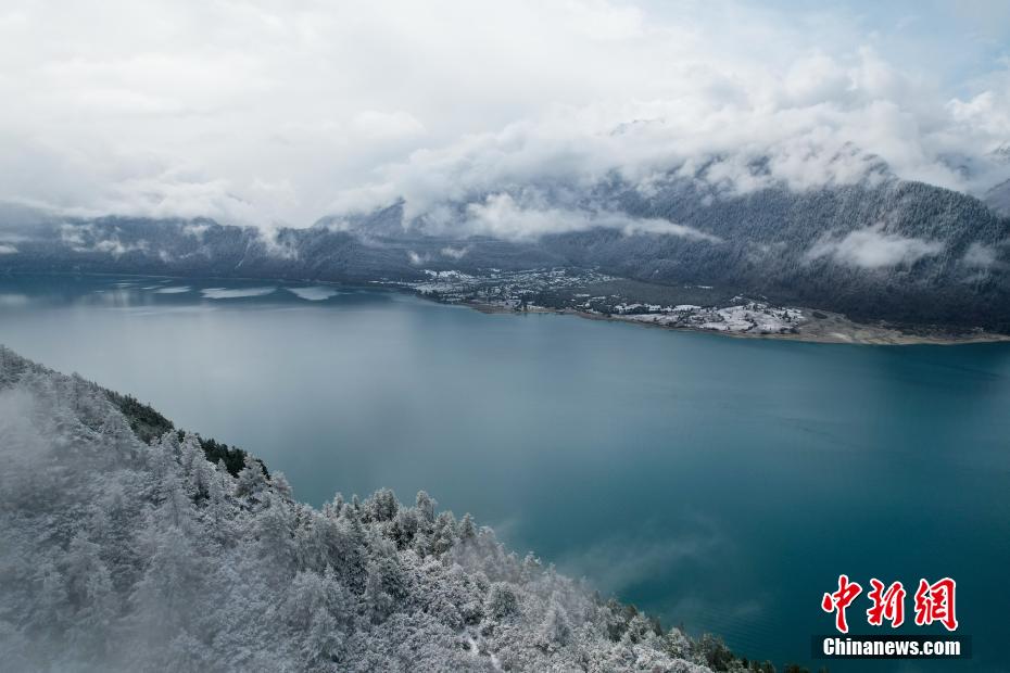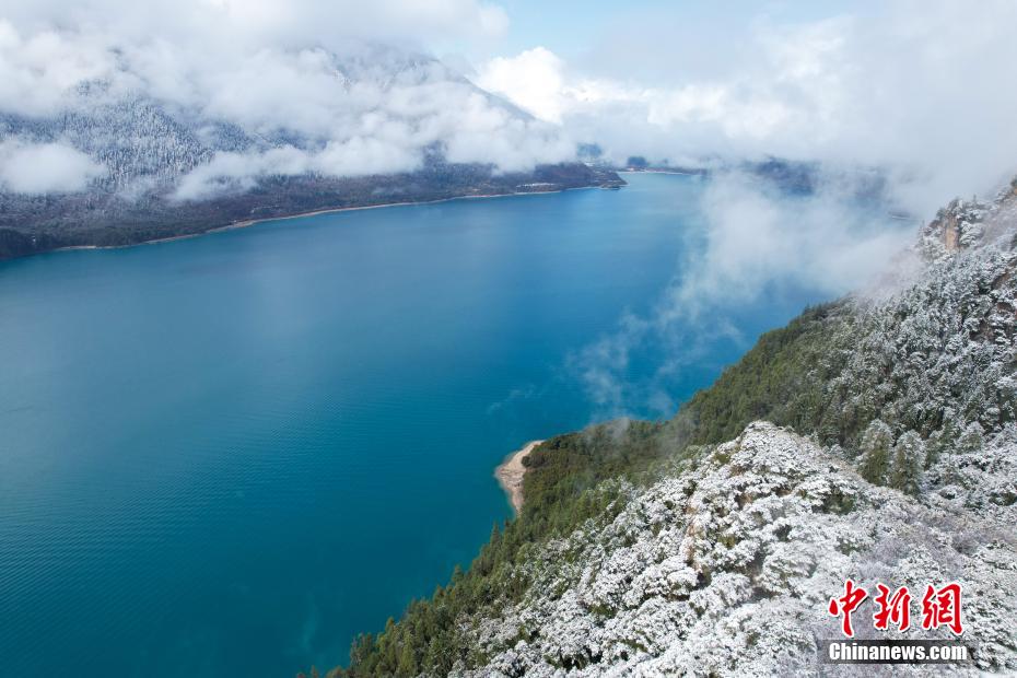 巴松錯(cuò)位于西藏林芝工布江達(dá)縣境內(nèi),地處巴河上游的高山峽谷中,是西藏首個(gè)自然風(fēng)景類國家5A級(jí)旅游景區(qū)。4月5日,巴松錯(cuò)迎來一場春雪,雪后四周原始森林猶如蒙上潔白面紗,湖面宛如一面藍(lán)寶石鑲嵌其中,風(fēng)光如畫。圖為4月5日,巴松錯(cuò)的湖光山色。中新社記者 江飛波 攝