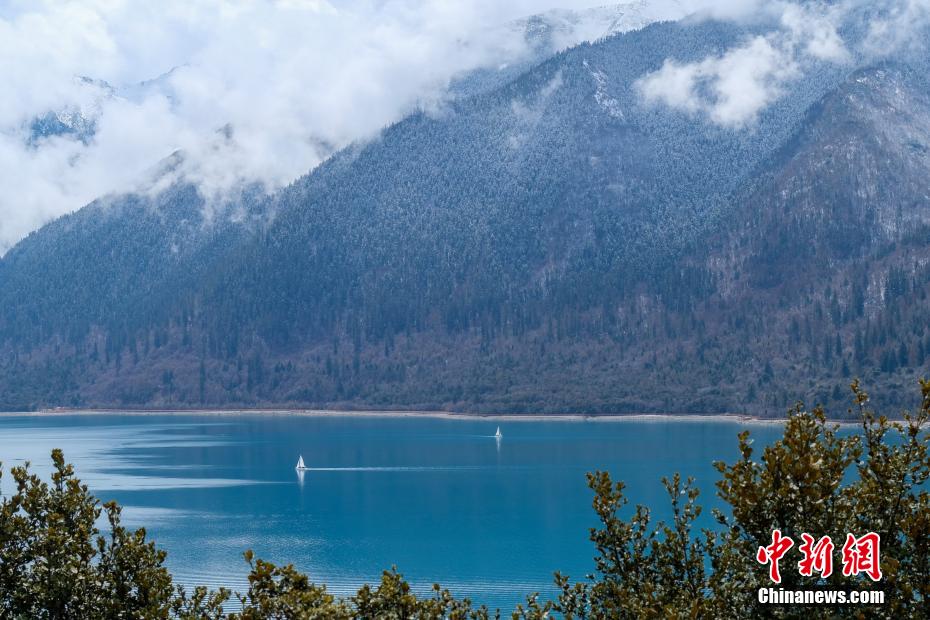 巴松錯(cuò)位于西藏林芝工布江達(dá)縣境內(nèi),地處巴河上游的高山峽谷中,是西藏首個(gè)自然風(fēng)景類國家5A級(jí)旅游景區(qū)。4月5日,巴松錯(cuò)迎來一場春雪,雪后四周原始森林猶如蒙上潔白面紗,湖面宛如一面藍(lán)寶石鑲嵌其中,風(fēng)光如畫。圖為4月5日,巴松錯(cuò)與遠(yuǎn)處的雪山風(fēng)光。中新社記者 江飛波 攝