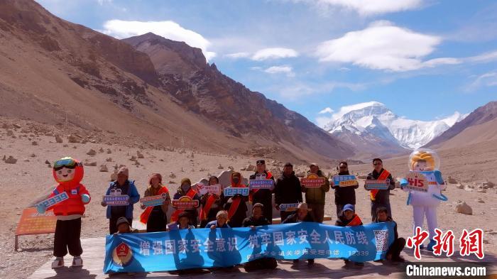 在專業(yè)部門的指導(dǎo)下,西藏自治區(qū)體育局防線小組開展了“問(wèn)鼎世界之巔 筑牢安全之基”的國(guó)家安全“上珠峰”宣傳活動(dòng),近日先后在登山大本營(yíng)、前進(jìn)營(yíng)地,通過(guò)展示國(guó)旗、警旗、拉橫幅、喊口號(hào)等形式,在“世界之巔”展現(xiàn)西藏“國(guó)安共護(hù)、防線共建”的生動(dòng)實(shí)踐,引導(dǎo)廣大干部群眾以攀登的魄力,鑄就堅(jiān)不可摧的安全屏障。日喀則市積極探索城市文旅超級(jí)IP“青青、稞稞”,推出“法耀珠峰·我與國(guó)家安全十周年”主題宣傳活動(dòng),近日分別在珠峰大本營(yíng)、“最美景觀大道”打卡地、珠峰游客集散中心、加烏拉山珠峰觀景臺(tái)等地,利用IP形象向來(lái)自世界各地游客及當(dāng)?shù)剡吤?、干部群眾開展了國(guó)家安全人民防線宣傳。