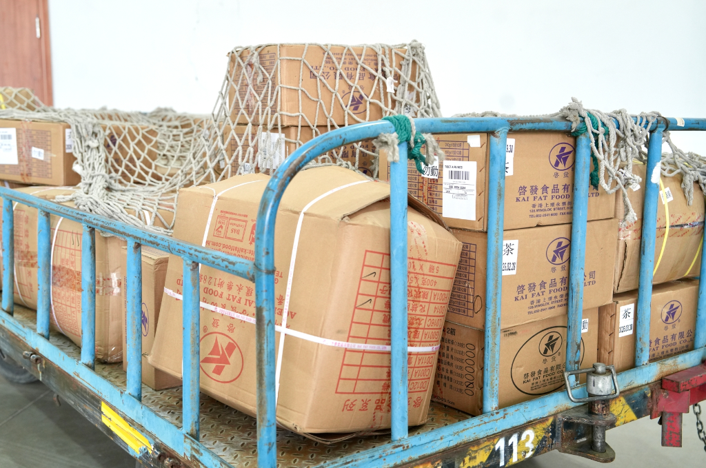 這是西藏首個(gè)航空口岸國(guó)際貨站啟用以來(lái)的首批香港貨物。(西藏機(jī)場(chǎng)集團(tuán)供圖)