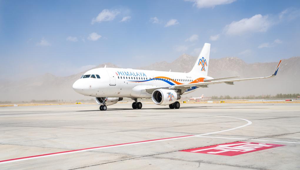 這是3月31日拍攝的執(zhí)飛拉薩至博卡拉國(guó)際航線首飛任務(wù)的喜馬拉雅航空H9731次航班。新華社記者丁增尼達(dá) 攝
