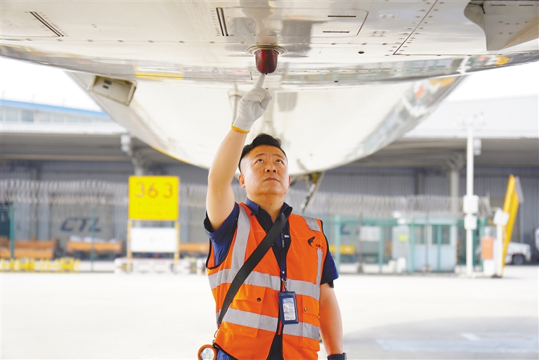 “因?yàn)槲业募亦l(xiāng)挨著機(jī)場(chǎng),從小就看著飛機(jī)起起落落。后來(lái)知道有飛機(jī)維修這個(gè)行業(yè),覺(jué)得能親手保障每一架飛機(jī)的安全飛行,是件多么有意義的事情,就一頭扎進(jìn)了這個(gè)行業(yè)。”談及與飛機(jī)維修的緣分,何濤眼中閃著光。