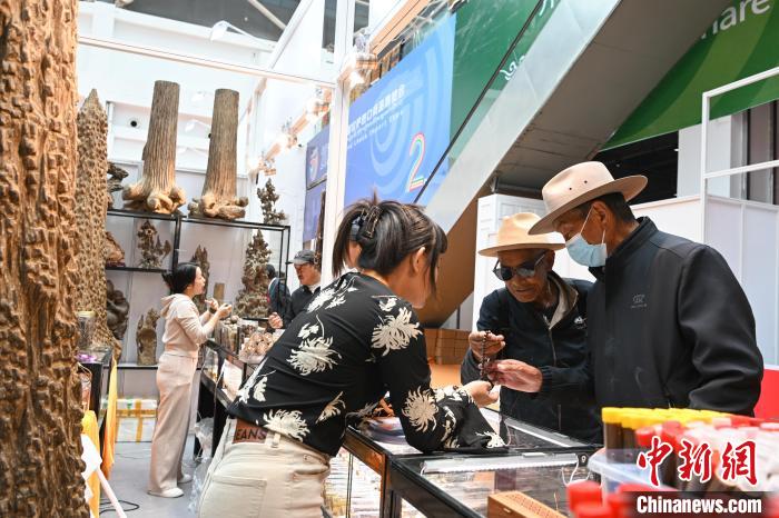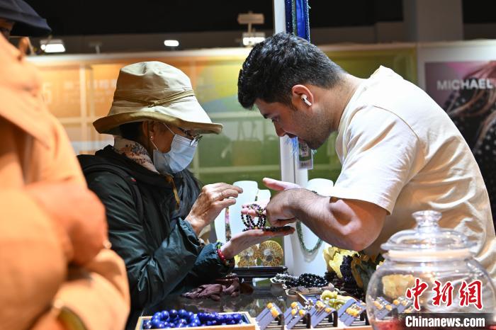 5月16日,2025第二屆拉薩進(jìn)口商品展覽會(huì)在西藏會(huì)展中心2號(hào)館舉行。該展會(huì)以“開放新拉薩,共享新機(jī)遇”為主題,吸引了來自30多個(gè)國家和250多家企業(yè)參展,客商總數(shù)為600多人,其中境外及港澳臺(tái)地區(qū)人員達(dá)200多人。本屆展會(huì)上,展商們帶來了超 1500個(gè)品類、10000余款展品。圖為拉薩進(jìn)口商品展覽會(huì)現(xiàn)場(chǎng),巴基斯坦商人(右)向顧客介紹、推銷自己的商品。中新社記者 貢嘎來松 攝