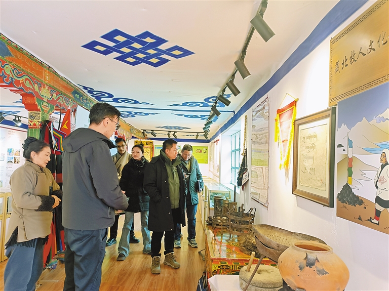 參觀者在藏北牧人文化館打卡拍照。