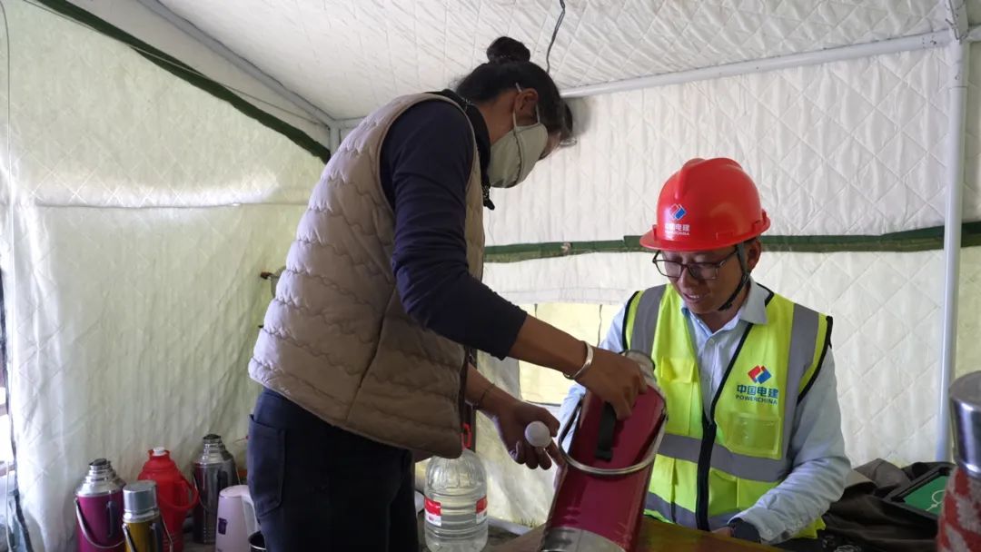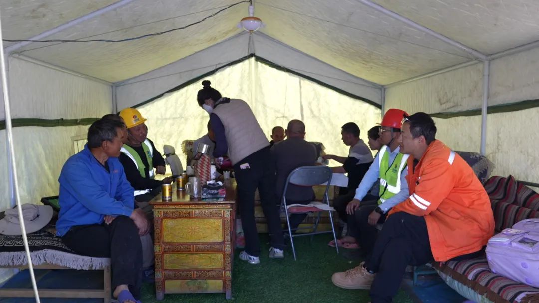 茶館主人巴桑,是村里有名的熱心人??粗┕と藛T為重建家園奔波,采購物資不便,她果斷在項(xiàng)目部生活區(qū)旁開起小賣鋪。與工人們熟絡(luò)后,她又搬來桌椅,搭起簡易帳篷茶館,只為給異鄉(xiāng)人一個(gè)歇腳放松之處。