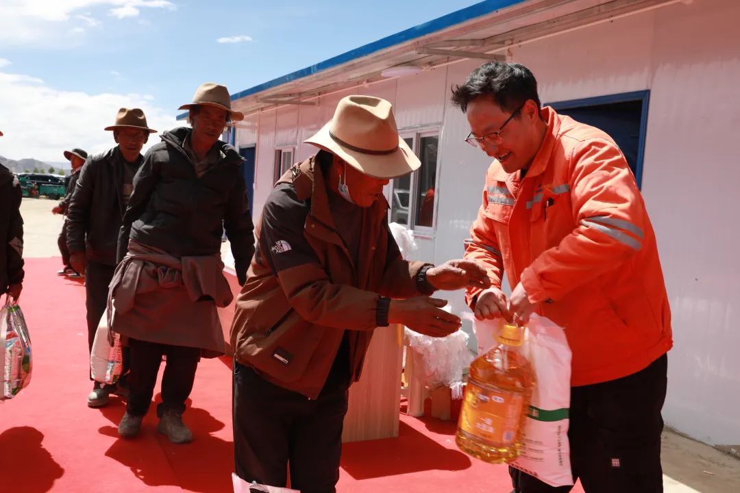 村民的熱情溫暖著施工人員。他們也想著回饋,端午節(jié),項(xiàng)目部工作人員送上米面油等生活必需品,表達(dá)對村民的感激與重建決心,真摯情感讓人心連心。