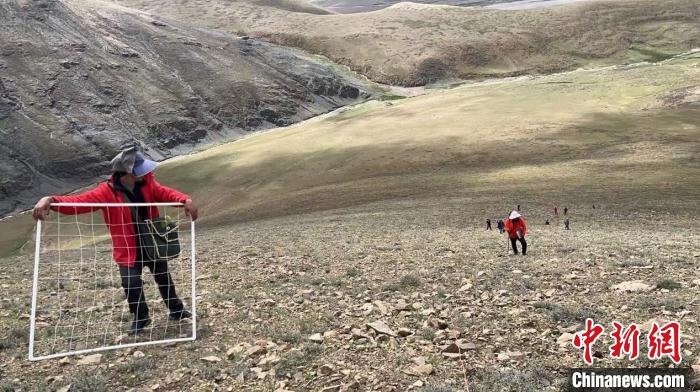 研究團(tuán)隊(duì)在考察山體物種豐富度和植被群落結(jié)構(gòu)的途中(海拔4600米左右)。中國(guó)科學(xué)院青藏高原研究所 供圖