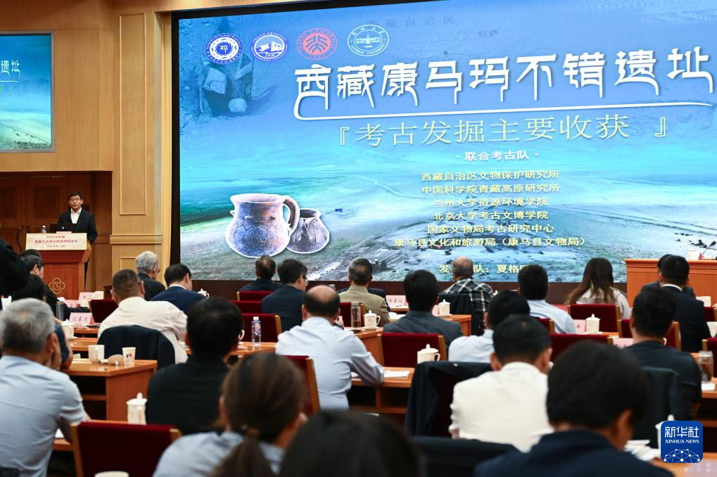 4月23日,聯(lián)合考古隊(duì)領(lǐng)隊(duì)夏格旺堆在“2024年度全國(guó)十大考古新發(fā)現(xiàn)”終評(píng)會(huì)現(xiàn)場(chǎng)向?qū)<覍W(xué)者和媒體介紹瑪不錯(cuò)遺址相關(guān)情況。新華社記者 李賀 攝