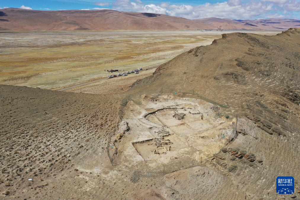 這是5月22日拍攝的瑪不錯(cuò)遺址第四期地面石構(gòu)建筑考古發(fā)掘現(xiàn)場(chǎng)(無人機(jī)照片)。新華社記者 李賀 攝