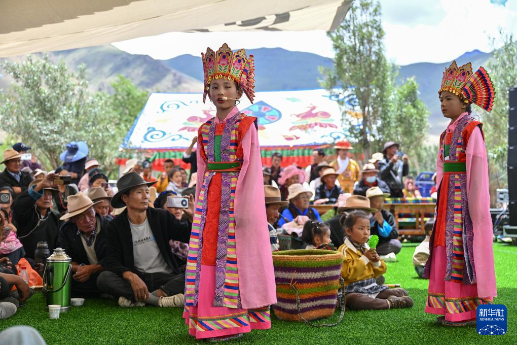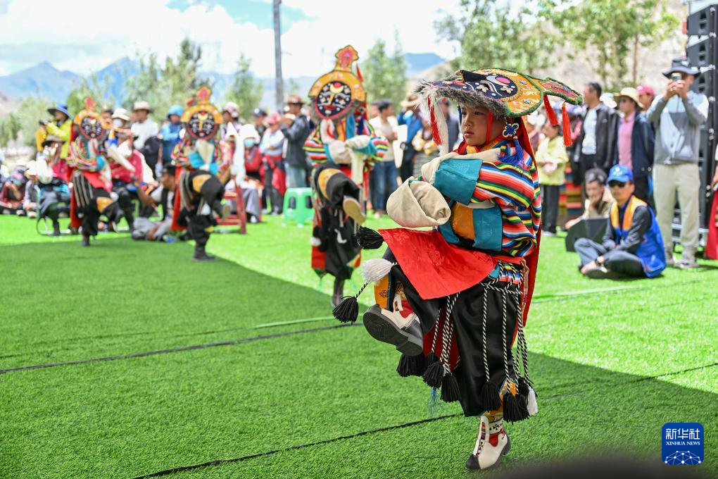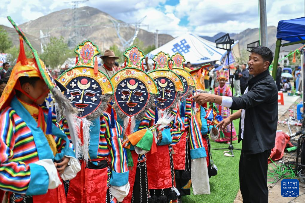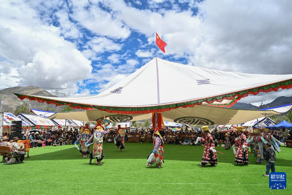 7月16日,民間藏戲表演隊在南木林縣非遺公園內(nèi)表演湘巴藏戲。新華社記者 李鑫 攝