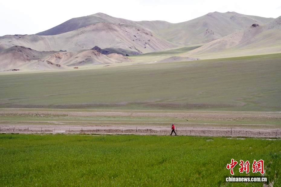 7月20日,在西藏阿里地區(qū)革吉縣文布當(dāng)桑鄉(xiāng)的人工種草基地,一位農(nóng)牧民在巡視草場。為解決當(dāng)?shù)囟旧笥貌堇щy,減輕天然草場壓力,2016年起文布當(dāng)桑鄉(xiāng)規(guī)劃建設(shè)人工種草基地。截至2024年,已種植人工草場3590畝,草業(yè)收入229.3萬元人民幣,有效帶動當(dāng)?shù)剞r(nóng)牧民就業(yè)創(chuàng)收和推動生態(tài)可持續(xù)發(fā)展。中新社記者 張祥毅 攝