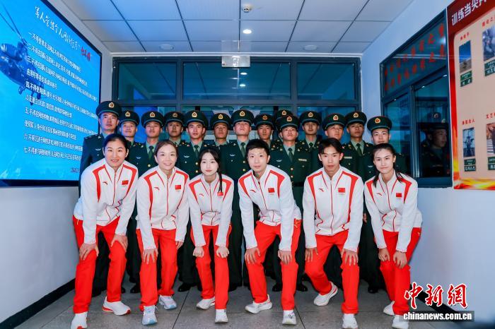 宣講結(jié)束后,運動場上的互動點燃了全場熱情。乒乓臺前,馬龍手持球拍與官兵切磋球技;羽毛球場,陳清晨與戰(zhàn)士組隊,你來我往間展現(xiàn)默契與活力;拳擊場上,李倩親自示范動作要領(lǐng),手把手和官兵“過招”;瑜伽室里,郭崎琪舒展身姿,與女官兵歡樂共舞。此外,潘展樂還與官兵們進行了遠程連線,分享他的水上技巧和訓(xùn)練經(jīng)驗。