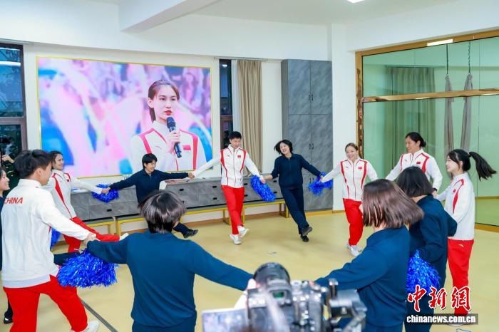 圖為“決勝巴黎·綻放奧運–––奧運冠軍面對面”巡回宣講活動西藏站走進軍營與女官兵歡樂共舞現(xiàn)場?;顒臃?供圖