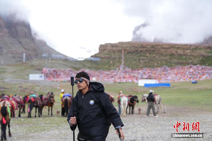 7月21日,一名來(lái)自印度的徒步旅行者在岡仁波齊山腳拍攝徒步視頻。張祥毅 攝