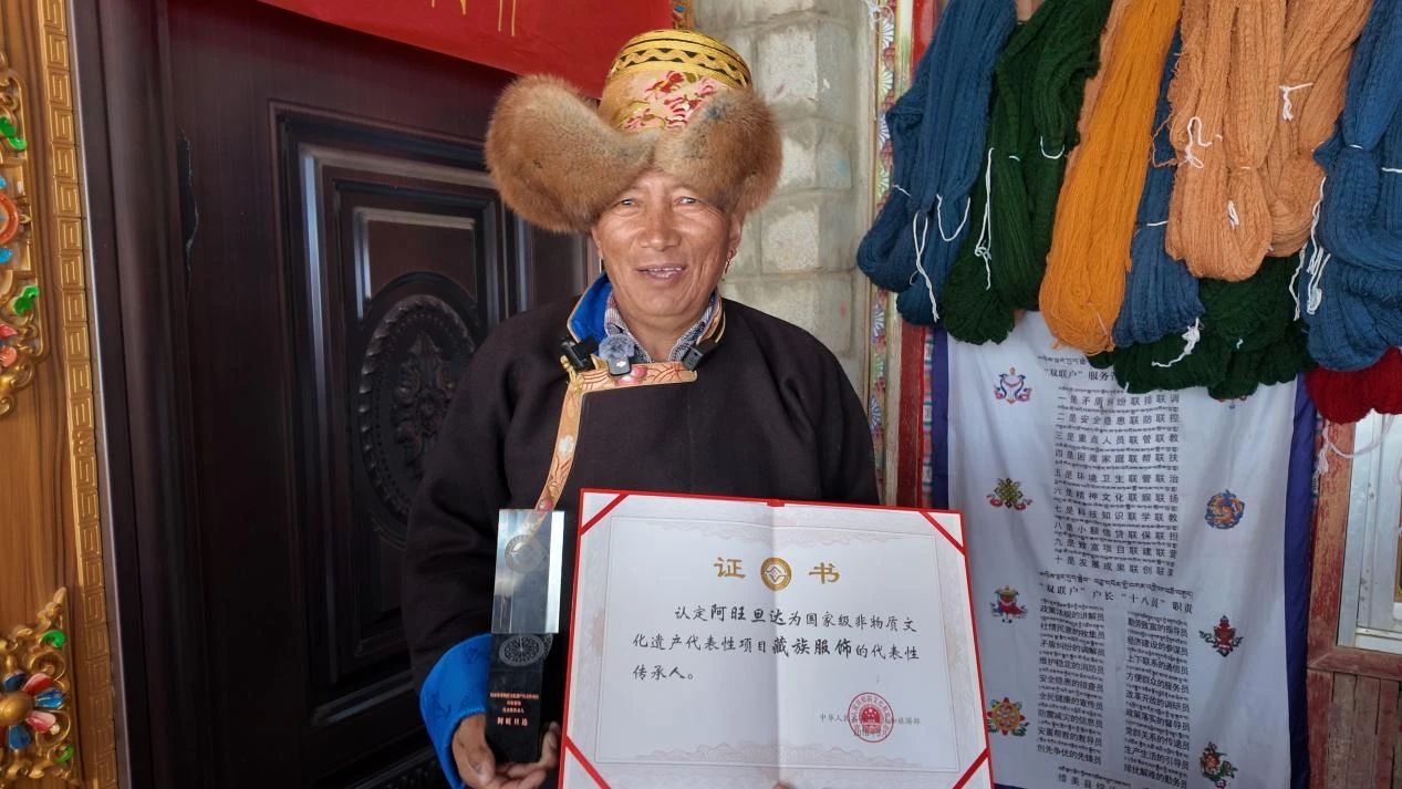 國家級非物質(zhì)文化遺產(chǎn)代表性項目藏族服飾代表性傳承人阿旺旦達。