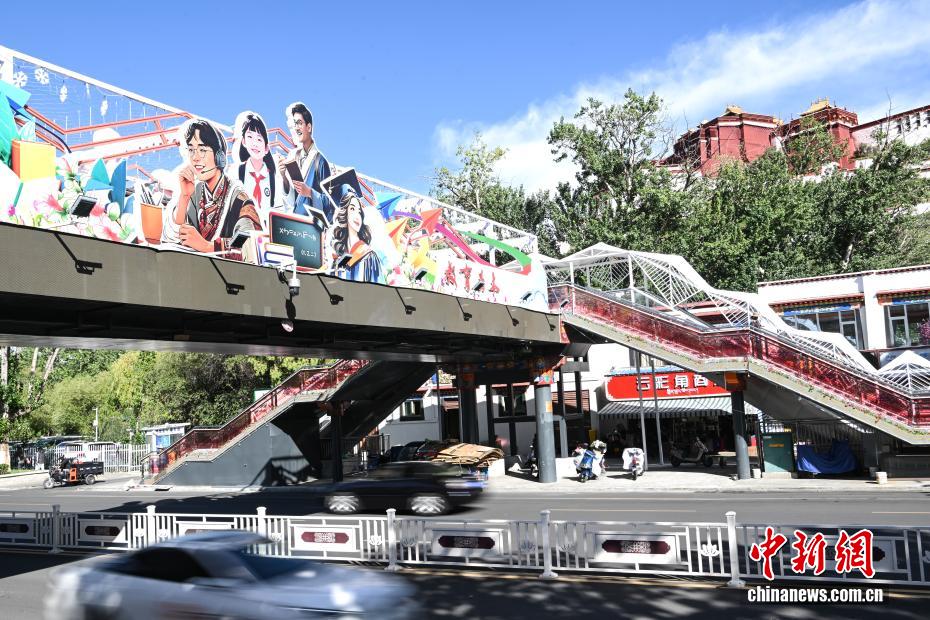 圖為以民族團(tuán)結(jié)為主題的人行天橋。中新社記者 貢嘎來松 攝