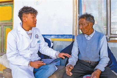 89歲的南加是村里最年長的老人,也是索朗丹增牽掛的對象。每個月,他都會拿起“智能書包”和平板電腦,上門為老人提供健康服務。包里裝著血壓計等,平板電腦里有老人的健康資料。