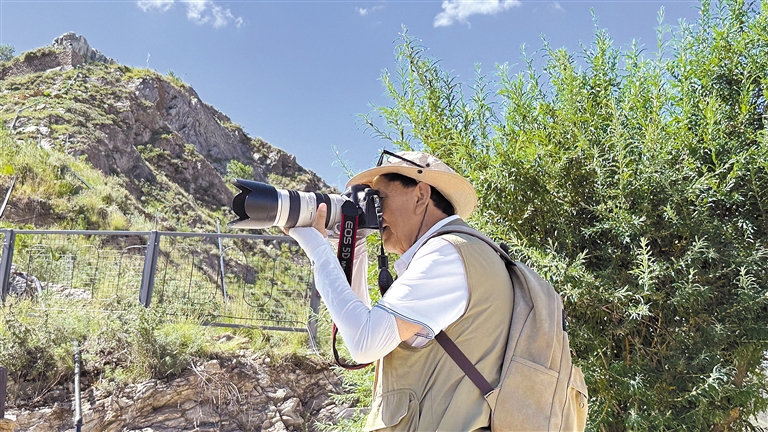 拉薩市民用相機(jī)記錄公園美景。
