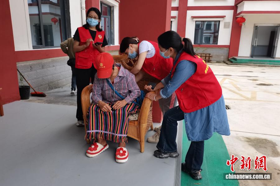 2025年5月23日,墨脫縣政協(xié)辦黨支部黨員干部與政協(xié)委員代表前往墨脫縣一家養(yǎng)老院開(kāi)展活動(dòng)。圖為黃小芳(右二)為行動(dòng)不便老人按摩捶背。受訪者供圖