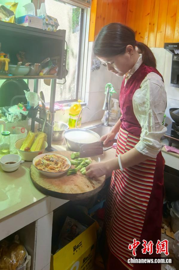 這種交融,也悄然浸潤(rùn)著兩個(gè)女兒的成長(zhǎng)。家里的餐桌永遠(yuǎn)擺著酥油茶和豆?jié){,藏裝與漢服常一起晾在陽(yáng)臺(tái)。藏歷新年,丈夫教女兒插青稞穗;春節(jié),她帶女兒貼春聯(lián)。幼兒園讓畫(huà)“最喜歡的場(chǎng)景”時(shí),大女兒畫(huà)了一群不同民族的孩子圍著石榴樹(shù)拉手笑:“這是墨脫,我們都是一家人,像石榴籽一樣!”