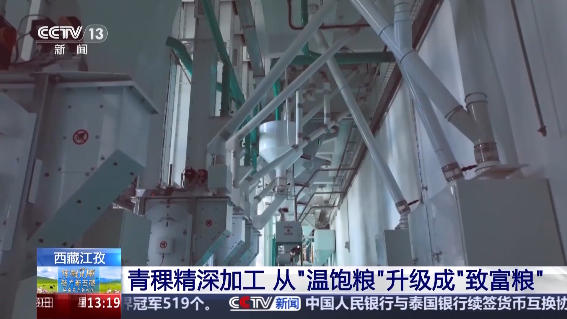 總臺(tái)記者 于晨:我現(xiàn)在是在江孜縣的一家專注于青稞產(chǎn)品研發(fā)的科技公司,去年9月,全國(guó)首條青稞谷物專用生產(chǎn)線在這里落地,填補(bǔ)了行業(yè)的空白,這讓青稞的得粉率由原來(lái)的60%以下提升至了70%以上。