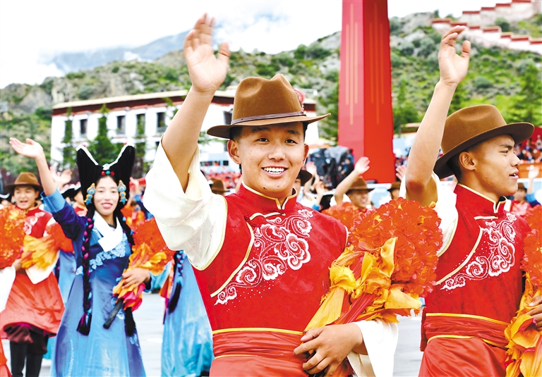 8月21日上午,西藏各族各界干部群眾約2萬(wàn)人歡聚拉薩市布達(dá)拉宮廣場(chǎng),熱烈慶祝西藏自治區(qū)成立60周年。