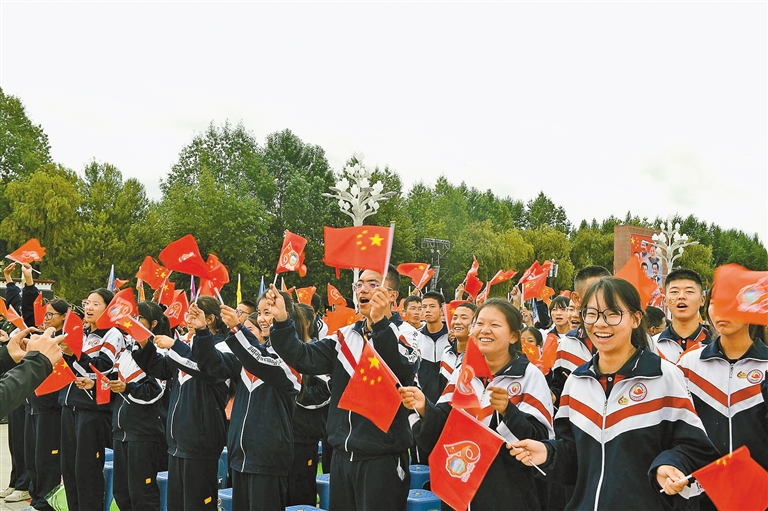 臺(tái)下的觀眾揮舞國(guó)旗。記者 旦增蘭澤 攝