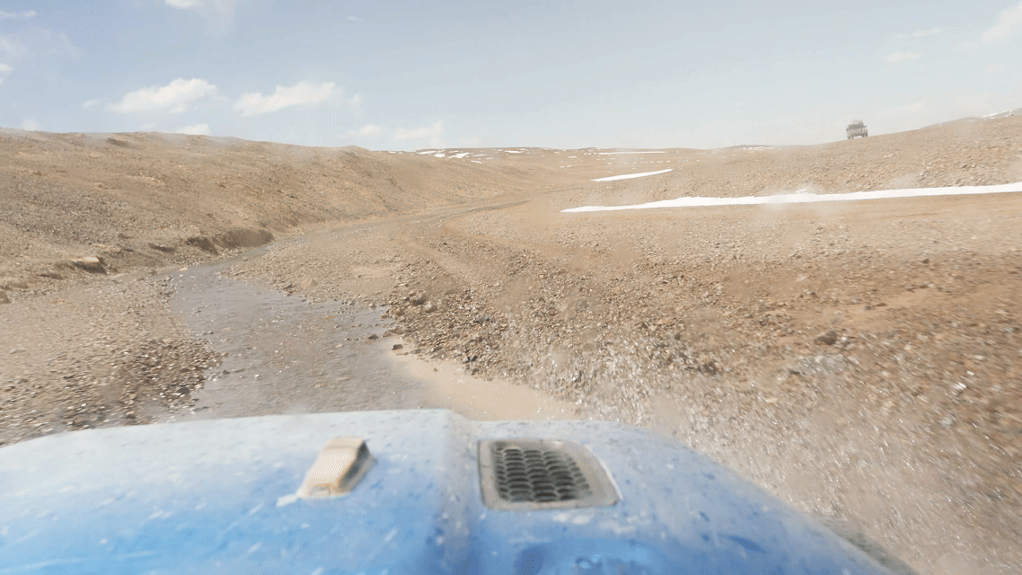 路面逐漸從“蜿蜒崎嶇的溪流”變成“波濤洶涌的大?!保?strong>越野車里好像一個迪斯科舞池,每件東西都像被賦予了生命一般蹦蹦跳跳,伴隨著我們這些乘客的驚呼,連同引擎的轟鳴一起,被揉碎在無邊荒原的呼嘯風(fēng)聲中。