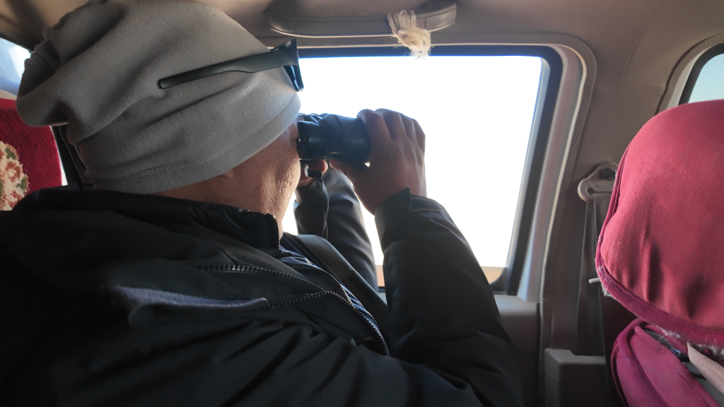 負責(zé)駕駛的野保員小哥則是波瀾不驚,我們的東倒西歪牽動著他的嘴角,讓他好幾次忍不住笑出聲來。這樣的路對他們來說,只是再熟悉不過的日常罷了。