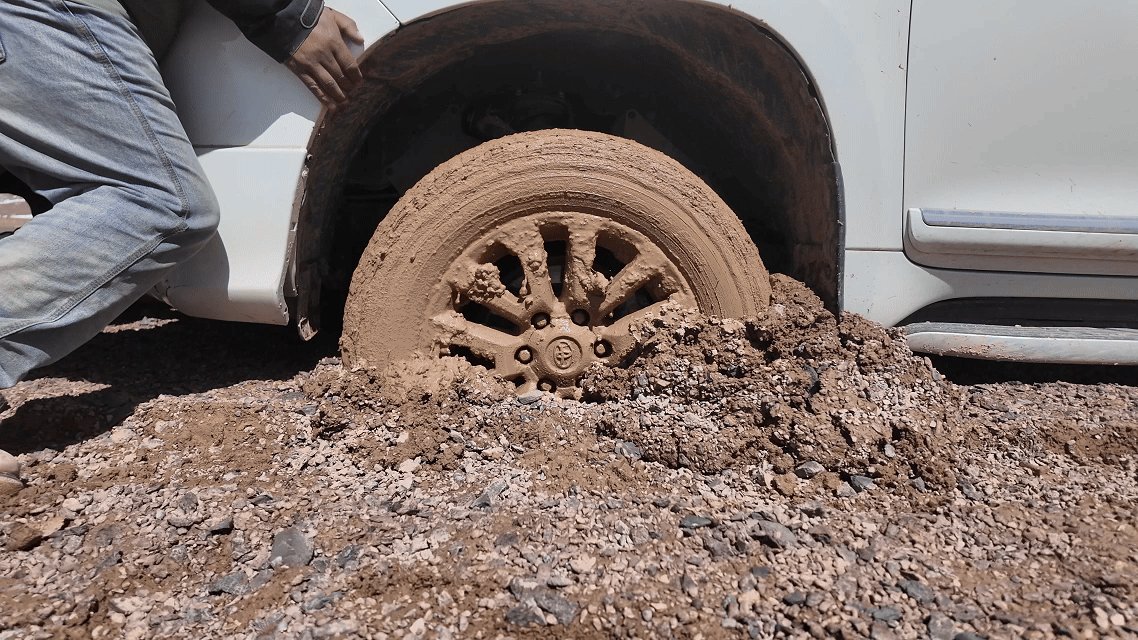眼前這一幕仿佛預(yù)示著藏羚羊的遷徙之路和我們的巡護之路同樣艱難。再往前行駛不遠,車隊中的皮卡車肉眼可見在泥里越陷越深。